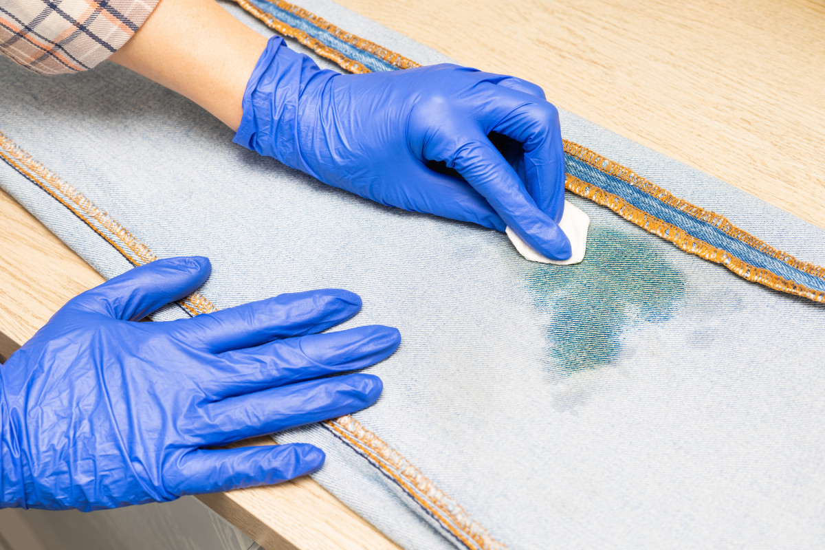 Как удалить жирное пятно на джинсах пятновыводителем?